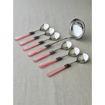 Suppenlöffel EME Napoleon mit farbigem Griff. Elegantes Design, speziell geformt für Suppe. Hochwertig, Spülmaschinenfest, ideal zum Essen von Suppe.