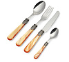 The handle is made of metal acrylic. It is a hard plastic (similar to plexiglass). It is heat-resistant and very durable, making it ideal for the cutlery. Théanks to the use of these high-quality materials, the cutlery can be washed in the dishwasher.